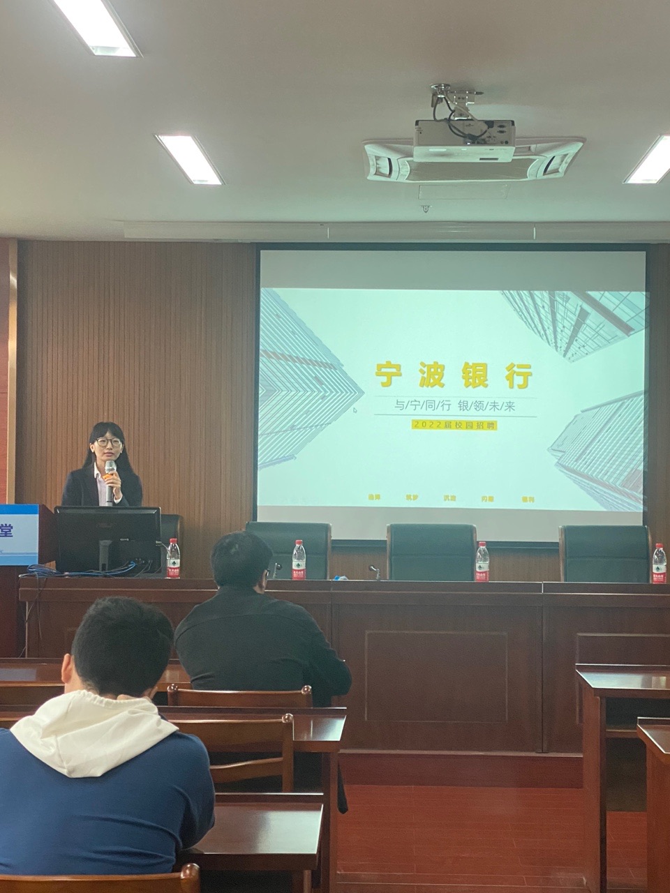 为扎实推进毕业生就业工作。5月11日,黄色小说 举行线下校园就业宣讲会,宁波银行杭州分行作为招聘方应邀开展宣讲。学院党委副书记李庆龙、学院辅导员和学生代表们一同参加了活动。