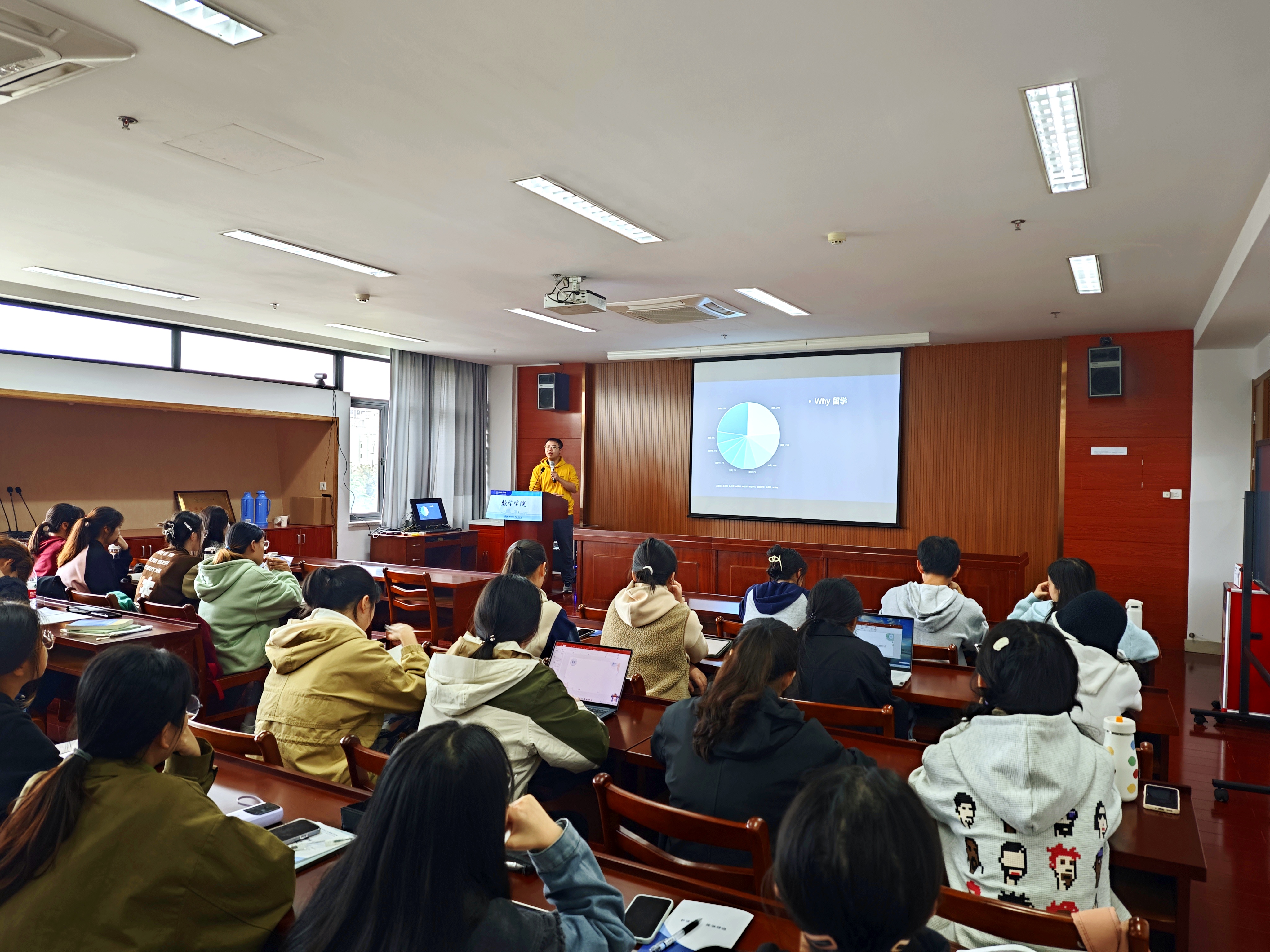 11月8日,为促进学院本科生升学和就业工作,黄色小说 邀请国内知名英语教育培训机构来校开展就业指导和学涯规划教育,近百余名本科生共同参加了活动。