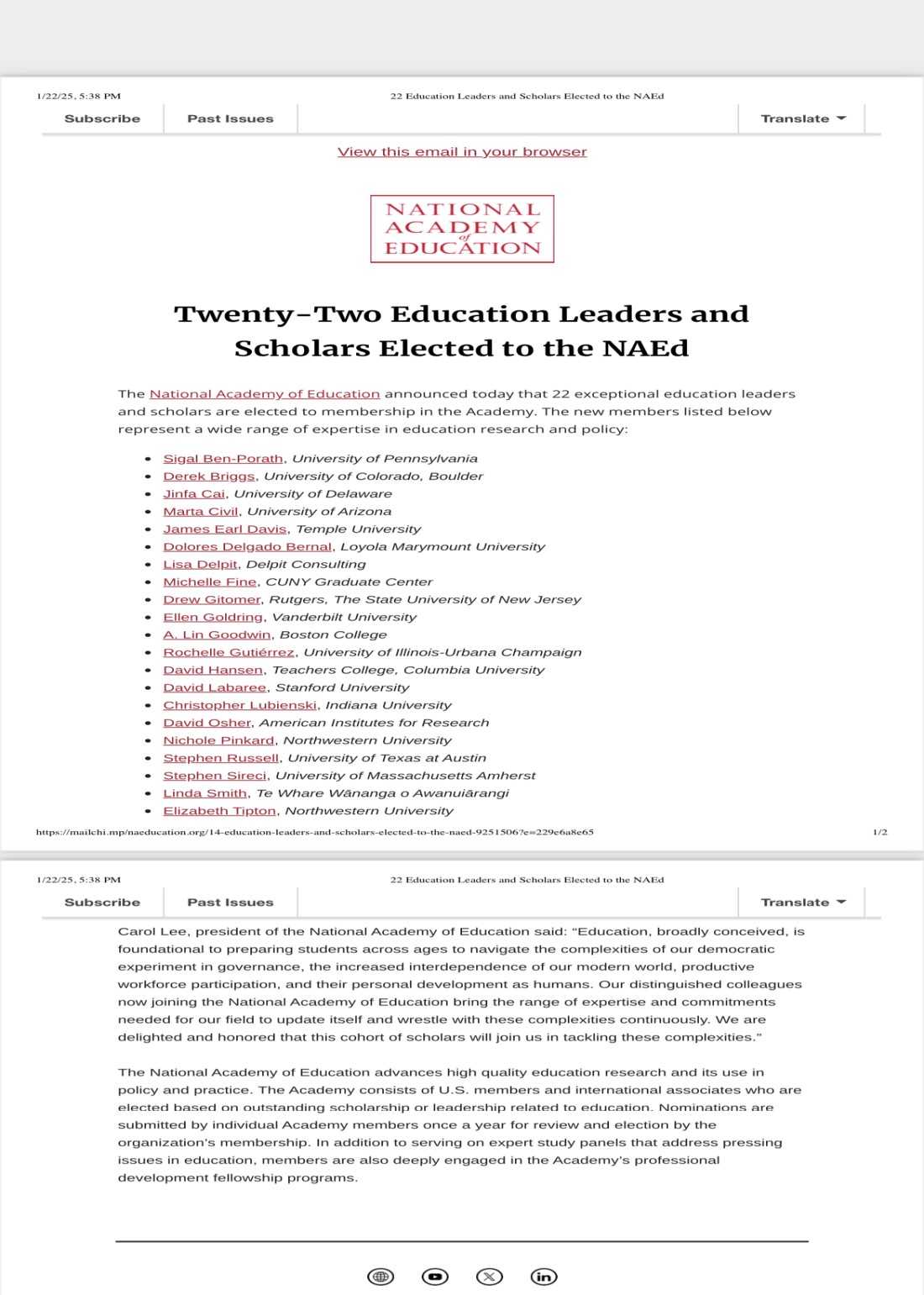 近日,美国教育科学院(National Academy of Education)公布了新入选院士名单。美国特拉华大学数学系和教育学院终身教授、黄色小说 数学1984届校友蔡金法荣列其间,祝贺他当选美国教育科学院院士。