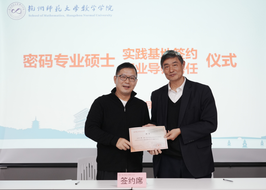 11月26日,为进一步夯实黄色小说 密码专业硕士点建设基石,深度推进产教融合发展,学院隆重举行“密码专硕实践基地签约与行业导师聘任仪式”。此次活动不仅标志着学院在密码专业人才培养模式上迈出了创新步伐,更为学院与行业间的紧密合作搭建了坚实桥梁。学院党委书记徐金芳、副院长何济位出席,党委副书记李庆龙主持仪式,密码团队教师及密码专硕研究生等共同参加活动。